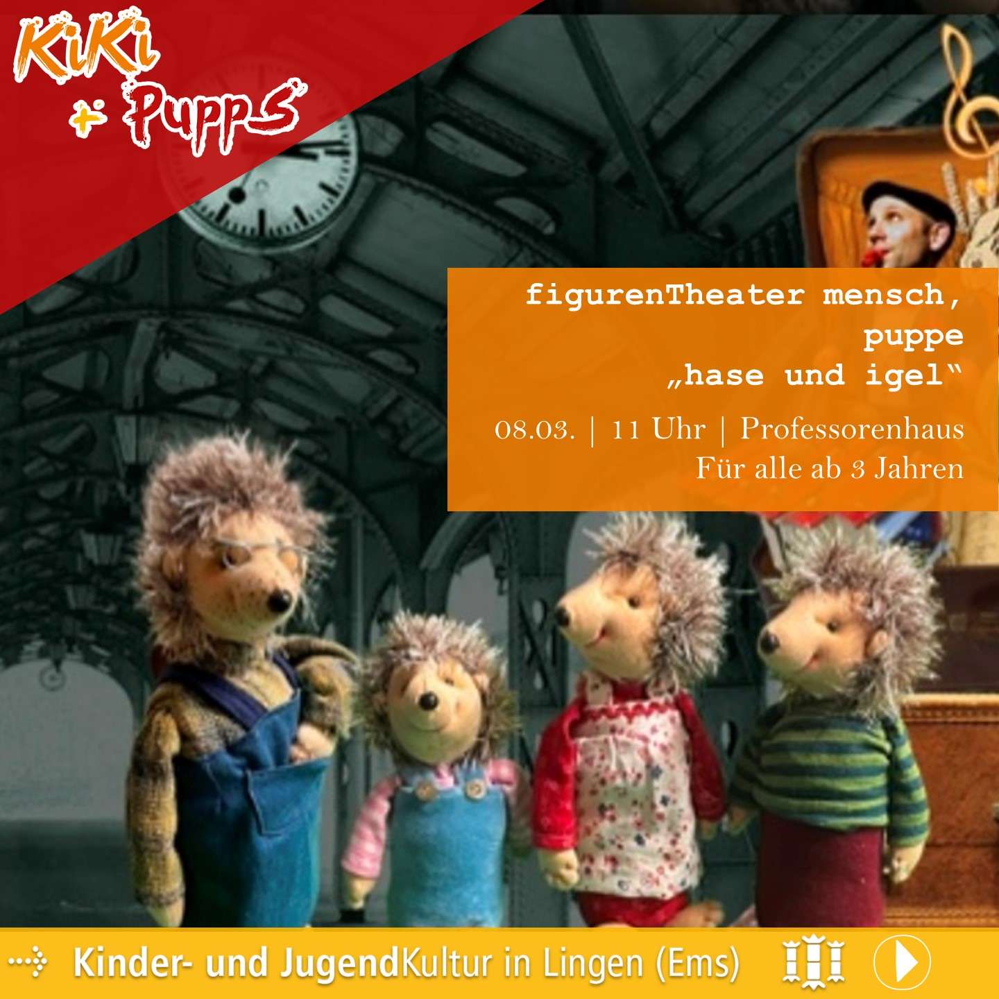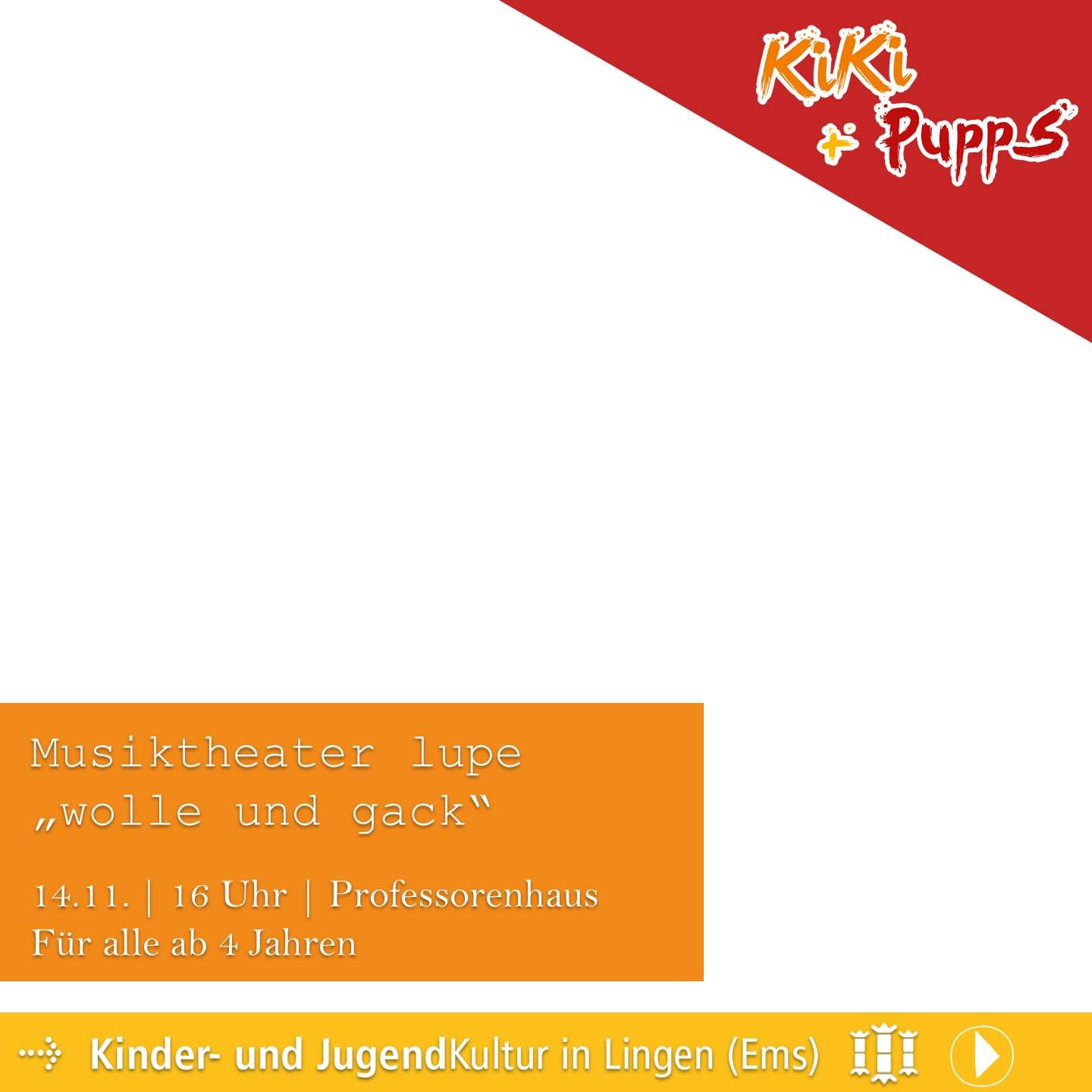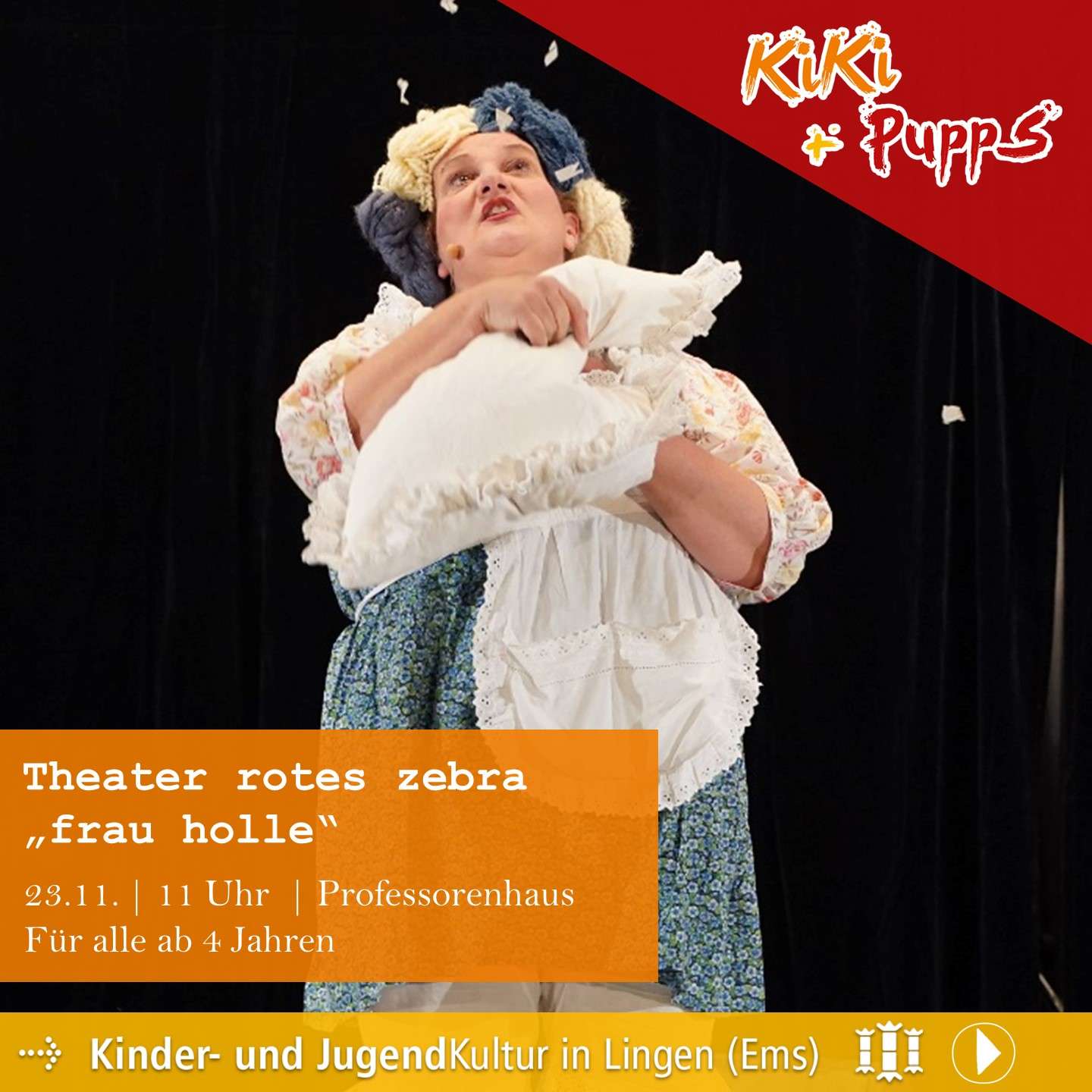 Ab Ende September ist es soweit und wir laden Euch und Sie wieder an vielen Sonntagen der neuen Spielzeit zu uns ins Professorenhaus ein, um in unserem gemütlichen Theatersaal der Faszination des Theaters zu begegnen. Theater bietet mit den unterschiedlichen Genres und den facettenreichen Umsetzungsstilen gerade Kindern die Chance, das Leben mit all seinen vielfältigen Möglichkeiten und den daraus resultierende Fragen zu verarbeiten und zu verstehen. Tickets gibt es beim LWT unter 0591 9144 144, online unter www.lingen.de und www.vibus.de, im Professorenhaus und unter Tel. 0591 91 663 0 bzw. E-Mail service@tpzlingen.de und je nach Verfügbarkeit an der Tageskasse.